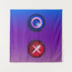 Tapisserie avec boutons de vote de jeu bleu et rouge, pied tac tic