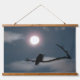 Pleine lune dans le ciel nuageux. Le clair de lune se réfléchit au large des nuages et le dos éclairent la silhouette d'un colibri assis sur une branche d'arbre nu.