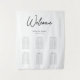 Plans de table simples pour petits mariages. Texte noir sur fond blanc.