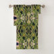 Regardant un art Nouveau de peu, la conception de tissu de tapisserie de Vieux Monde sur cet ensemble de serviette a été faite à partir d'une photographie originale des brins du romarin, coupés pour la cuisson. Le feuille aciculaire de cette herbe savoureuse forme un motif vert teinté de la pêche et de l'ivoire pâles. Le feuille se fane dans un arrière - plan foncé de vert bleuâtre.