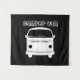 Tapisserie murale en noir et blanc avec illustration de camper van. Idéal pour les amateurs de voyages sur route.