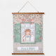 Cette tapisserie Anne of Green Gables présente notre bien-aimée Anne en regardant par une fenêtre avec des volets verts. Il y a une plaque d'identité sous sa fenêtre pour personnaliser avec un nom. Les couleurs comprennent, vert sauge, bleu pâle, orange, rose et blanc.