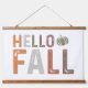 Ce design sur le thème de l'automne accueille chaleureusement la saison d'automne avec l'expression "Hello Fall". Les mots sont arrangés dans une disposition simple mais visuellement attrayante, avec "Hello" placé au-dessus de "Fall". Chaque lettre de l'expression est présentée dans une police grasse et bloquée, avec une texture légèrement désespérée, lui donnant un look rustique et patiné qui complète le thème automnal.
