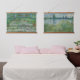Claude Monet ensemble de 2 peintures françaises anciennes dont "La passerelle japonaise" et "Les bords de Seine" des années 1800. Imprimé sur une tapisserie en bois accrochée au mur. Licence CCO, domaine public art.