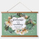 Parfait pour l'Affiche de bienvenue Mariage Rustique Luxe Desert Cactus Succulent Thème ou Boho Desert Wood-Tchapelé Tapestry Wall. Coral Blush rose et vert Destination Désert Cactus Succulent Or Géométrique Abstrait Frame sur cette Typographie Mariage. Collage du mur
