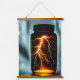 La tapisserie murale d'art numérique cool présente une foudre spectaculaire à l'intérieur d'un bocal fermé.