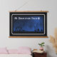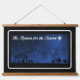 Belle scène de la Nativité avec la crèche et les trois Mages Sages, les Mages, étant conduit par l'Étoile de Bethléem à la naissance de Jésus. Toutes les images sont en silhouette contre le ciel du soir. Cette tapisserie se trouve dans un cadre en bois de sapin ouvert et magnifiquement taché, tenu par une ficelle forte pour être pendu.