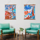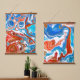 Tapisserie Suspendue Marbre rouge, blanc et bleu Art fluo