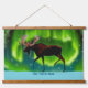 Une image toujours légèrement stylisée d'une silhouette d'orignal contre les aurores boréales vertes et brillantes. Ajoutez votre propre texte.