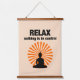 Le design présente une silhouette de Bouddha devant un soleil rétro orange avec la citation "Relax rien n'est en contrôle".