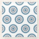 Glass coaster with a dotted pattern of targets in grey and light blue on a white background.