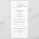 Elegante Tarjeta de Menú de Boda en Caligrafía, Blanco y Negro. Con las minutas personalizadas, podrás compartir con tus invitados los detalles del menú de tu boda, manteniendo un diseño coherente con tus invitaciones. ¡Una opción perfecta!