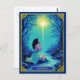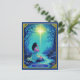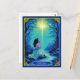 Postcard in the tarot card XVII: The Star: A serene woman kneels by a luminous stream under a radiant star, surrounded by blossoming flowers and tranquil trees. Bathed in soft, celestial light, she gazes upward in wonder and hope, evoking peace, inspiration, and spiritual renewal.