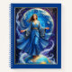 Journal in "The World" tarot card portraying a graceful woman in ornate blue robes, symbolizing unity and fulfilment. Standing atop a radiant globe, she embodies harmony, wholeness, and universal connection.