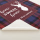 Cute home sweet home Christmas blanket you can easily customize by clicking the "Personalize" button, Featuring deer silhouette and clan MacLachlan tartan in red, and purple check.