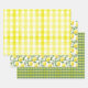 Elevate your gift-giving with this meticulously curated yellow wrapping paper set, designed to bring a touch of coordinated sophistication to every present. This collection provides everything you need to create beautifully wrapped gifts that are sure to impress. Inside, you'll discover classic checkered patterns, a timeless design element that exudes understated elegance. These checkered patterns are presented in two distinct sizes, offering versatility and allowing you to tailor your wrapping to the specific dimensions and shape of each gift. The varying scales of the checkered design create visual interest and depth, ensuring that your presents stand out from the crowd. In addition to the classic checkered options, this set also features a cheerful lemon and white floral design. This bright and airy pattern adds a touch of whimsy and visual interest, perfectly complementing the more traditional checkered patterns. The combination of these patterns allows for a personalized and stylish presentation, ensuring that each gift is a unique expression of your thoughtfulness. Ideal for adding a festive touch to New Year's gifts or any special occasion, this wrapping paper set transforms ordinary presents into extraordinary tokens of appreciation. The coordinated designs allow for a cohesive and polished look, while the variety of patterns ensures that you can create a truly personalized presentation that reflects your individual style and makes each present feel truly special.