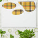 A cute tartan, plaid, dog paw print in orange, black, white, green and red colours.
