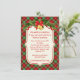 Branch of holly and Christmas bells set against red-green Scottish tartan pattern background. Easy to customize - just put your text, change font, colour and size.