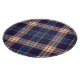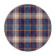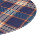 Vibrant tartan plaid with navy blue, orange, and beige hues.