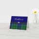 Great looking traditional tartan plaid note cards, in blue and green. A black band, with a silver tone decoration stretches across the middle of the card, with plaid, on the bottom, of the card and solid blue, on the top. Text in white script is customizable to read anything you want. Very elegant note cards to add a special touch to your every day or special occasion correspondence.