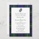 Traditional Scottish tartan plaid wedding invitation, done with the lovely blue and green tartan of the Forbes clan. A white coloured text area, in the middle has a dark green fern frond at the top. Text is in black and green and is fully customizable to suit your wedding needs. Personalize text to suit your needs.