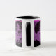 La tasse à café promotionnelle fait une grande déclaration pour vous-même, vos employés, à votre salon, pour vos clients et amis, pour aider à promouvoir votre entreprise. Assez pour posséder, avec un effet arc-en-ciel graphique et toutes vos informations d'affaires, comme adresse web, adresse email, numéro de téléphone, adresse municipale, nom du salon, votre nom et titre, plus de la place pour une déclaration personnelle. Conçu par HAMbyWhiteGlove aka HAMbWG. violet, noir graphique - avec texte noir, montré sur tasse blanche avec noir intérieur, manche noire.
