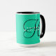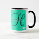 Tasse à café vert à la menthe avec votre nom en blanc et initiale en noir. Vous pouvez modifier les couleurs en choisissant les options personnalisation et personnaliser. Design HAMbyWhiteGlove alias HAMbWG.