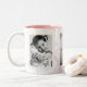 Photo tasse avec bordure décorative a de la place pour trois de vos photos préférées. Chaque photo est encadrée de blanc et il y a une étoile de tournage arrière - plan. Montré en blanc avec rose à l'intérieur et noir et blanc rehaussé photos. HAMbyWhiteGlove aka HAMbWG