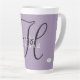 Tasse à café violet lavande avec votre nom en blanc et initiale en noir. Vous pouvez modifier les couleurs en choisissant les options personnalisation et personnaliser. Design HAMbyWhiteGlove alias HAMbWG.
