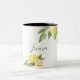 Célébrez votre tasse principale avec une tasse au citron. Un tas de citrons entiers et coupés arrangent le haut et le bas de cette mignonne tasse. Idéal pour un usage quotidien ou pour en faire une jolie commémoration d'un agrumes ou d'un mariage, fiançailles, anniversaire ou anniversaire sur le thème du jardin. Disponible avec des produits correspondants.