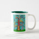 L'Arbre de Vie, un arbre aux nombreuses branches, est un thème récurrent archétype dans de nombreuses cultures du monde qui signe l'interconnectivité de toute vie sur notre planète. Il apparaît dans l'art, la théologie, la philosophie et la mythologie dans le monde entier. Cette version colorée présente des feuilles colorés, des motifs d'écorce fantaisiste, et de nombreuses poses de chats multicolores en action, chacune recouverte de marques colorées uniques qui rappellent celles que l'on trouve sur les sculptures d'animaux peintes Oaxacan.