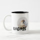 Photo d'un petit, mais plutôt agressif, vous regardant moineau et un texte Badass. C'est vraiment un fauteur de troubles. Mug à café amusant pour n'importe qui