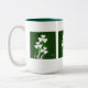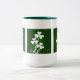 Des shamrocks blancs sur un lit de Green irlandais décorent cette Mug de 15 oz de deux tons pour vous aider à célébrer la Saint Patrick. Remplissez-le au bord avec votre boisson préférée, café, thé, whisky irlandais ou un peu de "l'esprit" de votre design. Quel que soit votre choix, vous serez en train de griller les Irlandais chaque fois que vous prenez une gorgée de sa belle tasse.