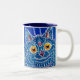 Mug à café avec la peinture animale de Louis Wain A Cat in Gothic Style (1860-1939). Un chat bleu psychédélique regarde amicalement avec les yeux jaunes le spectateur. Un cadeau merveilleux pour l'art amoureux des chats et anglais.
