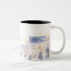Celebrate the magical and festive holiday season with our personalized photo mug. Our vintage holiday design features a farm landscape of Christmas trees, this Christmas pattern features a farm Christmas scene with a farm, a red barn, children playing and throwing snowballs, Christmas trees and a red vintage truck