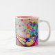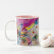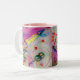Clown rose, coloré, capricieux, drôle jouant du bugle avec un hibou expressif et des notes musicales joyeuses, fleurs, feuilles en rouge vif, fuchsia, violet, violet, bleu, couleurs blanches, aquarelle de Bulgan Lumini (c)