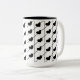 Black Stripes Coeur Deux Tons De Café Mug. Elégant motif noir et blanc avec des rayures verticales et diagonales avec de mignons coeurs noirs.