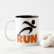 Courir des T-shirts, des tasses, des sacs, desgardiens, des débardeurs, des sweat - shirts à capuche et d'autres vêtements et cadeaux pour les coureurs avec un coureur de silhouette noire et un texte orange qui lit RUN. Ces vêtements et cadeaux RUN sont parfaits pour tous ceux qui s'entraînent pour un 5K, ceux qui aiment courir, ou ceux qui ont déjà accompli plusieurs marathons !