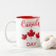 Trois feuilles d'érable rouge avec le texte "Fête du Canada"