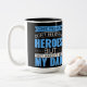 A Cute Typography Mug For Dad In A Black And Blue Combo Mug That Reads, Some People Don't Believe In Heroes But They Haven't Met My Dad.