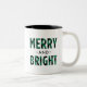Cette tasse à café festive présente un design moderne de typographie "Joyeux et brillant" avec des lettres à motif de buffle. Le design dans les tons vert et noir. Magasinez notre magasin pour plus de couleurs !