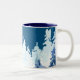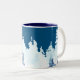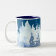 Scène Forêt D'Hiver Mug À Café À Deux Tons. Image d'arbres recouverts de neige près d'une rivière la nuit.