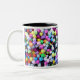 Tasse avec l'intérieur noir avec l'image des matrices colorées assorties.