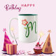 Tasse 2 Couleurs Lettre initiale Monogramme vert, Fleur orange