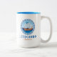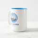 Litochoro, tasse à café à deux tons de Grèce avec un design d'un navire grec ancien et de lettrage de style grec. Ce modèle de navire de la Grèce antique a la clé grecque dans un design circulaire avec la mer et le ciel. Ce design de style grec fait de cette tasse un cadeau idéal ou un souvenir ou pour boire un café pendant que vous êtes en vacances à Litochoro.