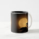 C'est l'automne, et une lune jaune doré et lumineuse s'est élevée derrière les silhouettes noires de feuilles soufflant dans la brise sur cette énorme tasse photographique. L'arrière - plan est illuminée dans les tons orange, or et marron pour créer un motif abstrait dans un motif asiatique. La conception est répétée sur les côtés droit et gauche.