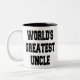 Cette tasse avec la citation "Le plus grand oncle du monde" est parfaite pour le meilleur oncle.