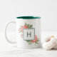 Sirotez un verre dans le style de cette saison de fêtes avec notre tasse monogrammée festive, avec votre monogramme initial unique encadré par des fleurs de pivoines couleur rouge et un feuillage vert luxuriant.
