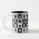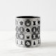 Tasse noire et blanche de motif d'échecs. Un motif élégant de pièces d'échecs avec le roi, la reine, le freux, le chevalier, l'évêque et le gage sur un échiquier attaquent. Cette tasse ringarde fraîche d'échecs est entièrement personnalisable, ajoute vos textes et images.
