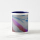 Oeuvre contemporaine de style aquarelle avec une image dans les tons rouge, violet, bleu et cyan.